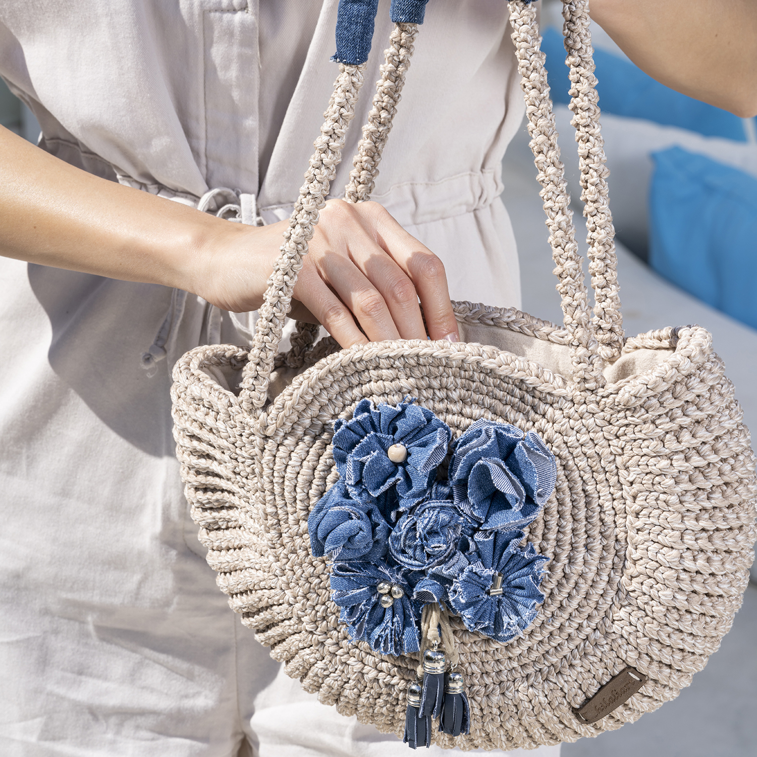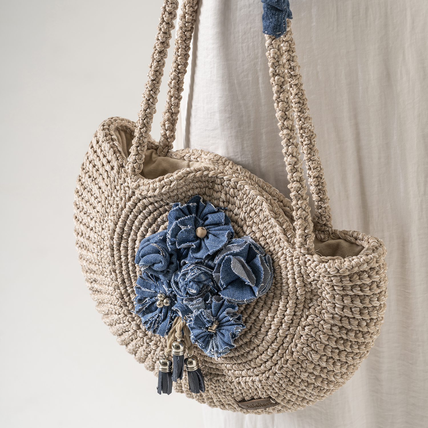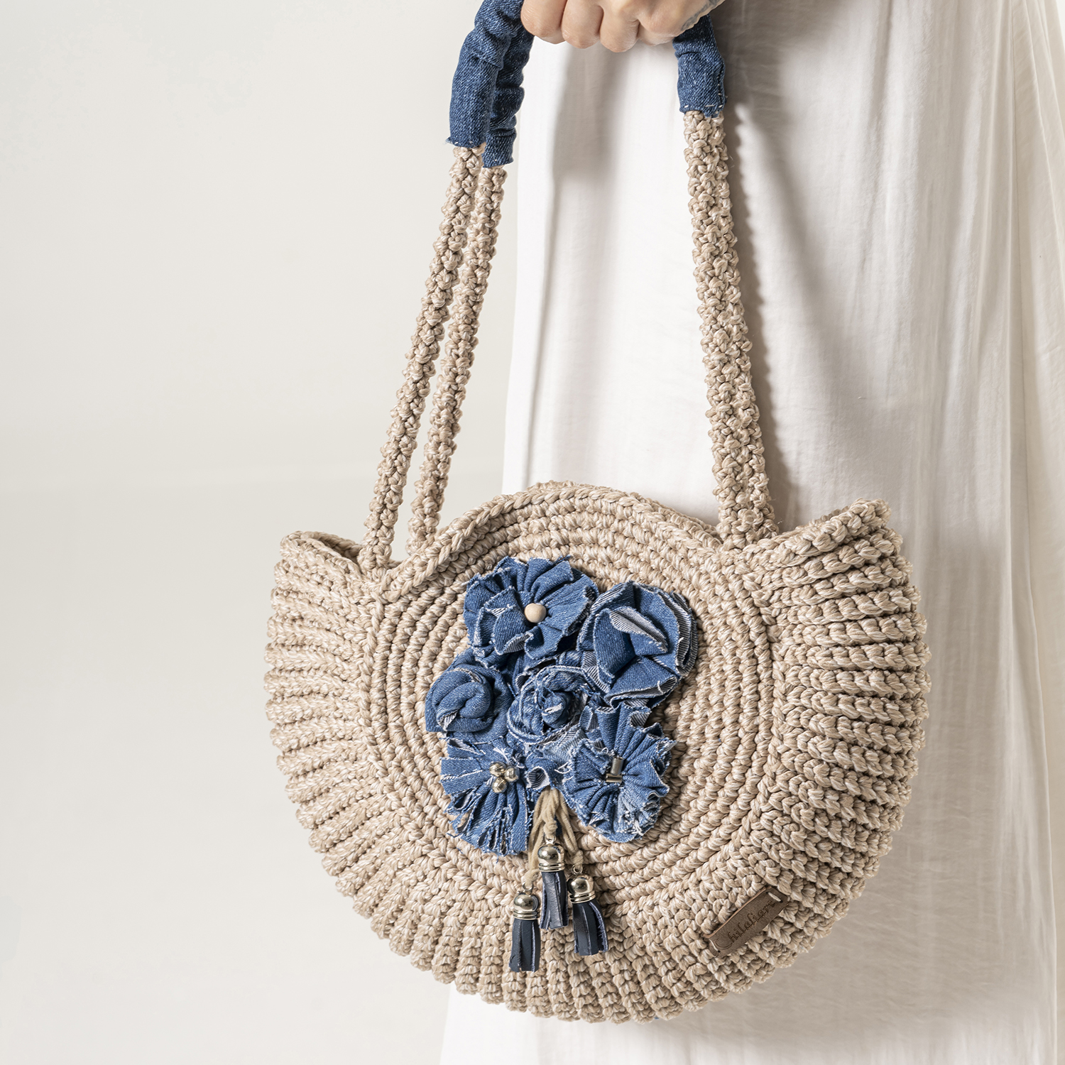 A special design inspired by every women’s unique styles. Made entirely by hand, using cotton threads. It is made for women who interpret elegance from a brand new perspective, and made from upcycled jeans. It is one of a kind and is specially made for any woman who owns it.